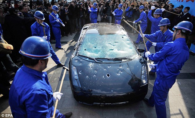 He hired a group of men from China's eastern Shandong province, gave them sledgehammer and let them get on with smashing up the Italian sports car.